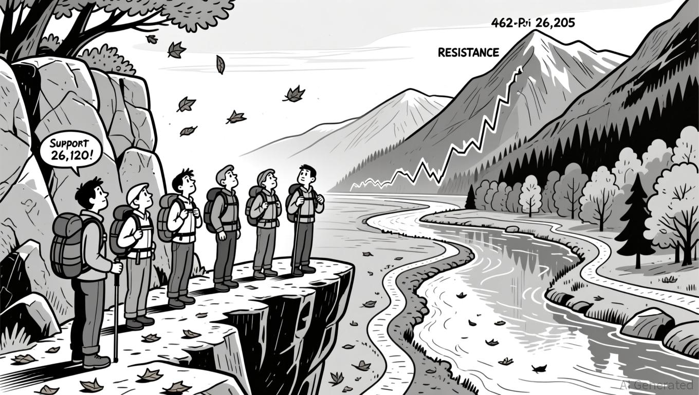 . The index has recently broken through a falling trendline resistance that had capped its highs since late 2024, near 26,000. This consolidation is characterized by a 1.10% weekly gain, with the index hovering near the upper Bollinger Band and lifetime highs. However, signs of moderate momentum fatigue are emerging, as evidenced by and a flattening MACD histogram.Intraday traders are observing a bearish candlestick formation at 26,147, yet