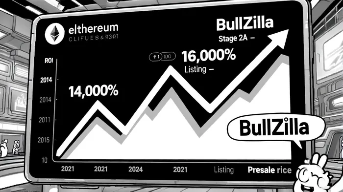 In 2025's meme coin frenzy, projects are redefining ROI expectations with engineered scarcity and hyper-deflationary mechanics. Among them, BullZilla ($BZIL) stands out as a presale token with a projected 16,164% return on investment from its current Stage 2A price to its listing target of $0.00527 [1]. This dwarfs Ethereum's historic 14,000% ROI from its 2014 presale [2], raising questions about whether BullZilla's aggressive tokenomics can replicate—or even surpass—Ethereum's decade-long ascent in a compressed timeframe.
