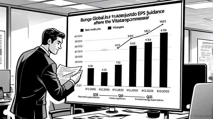 Bunge Global SA's recent revision of its 2025 earnings guidance underscores the company's strategic recalibration amid a volatile agricultural commodities landscape. Following the completion of its $10.8 billion merger with Viterra in July 2025, BungeBG-- has restructured its reporting segments and adjusted its financial outlook, reflecting both the opportunities and challenges of its expanded global footprint. The company now projects full-year 2025 adjusted earnings per share (EPS) in the range of $7.30 to $7.60, down from its prior standalone forecast of $7.75, while anticipating second-half 2025 adjusted EPS of $4.00 to $4.25, according to a MarketChameleon report. This revised guidance accounts for integration costs, margin pressures, and macroeconomic headwinds, yet highlights Bunge's commitment to leveraging its enhanced scale and diversification.