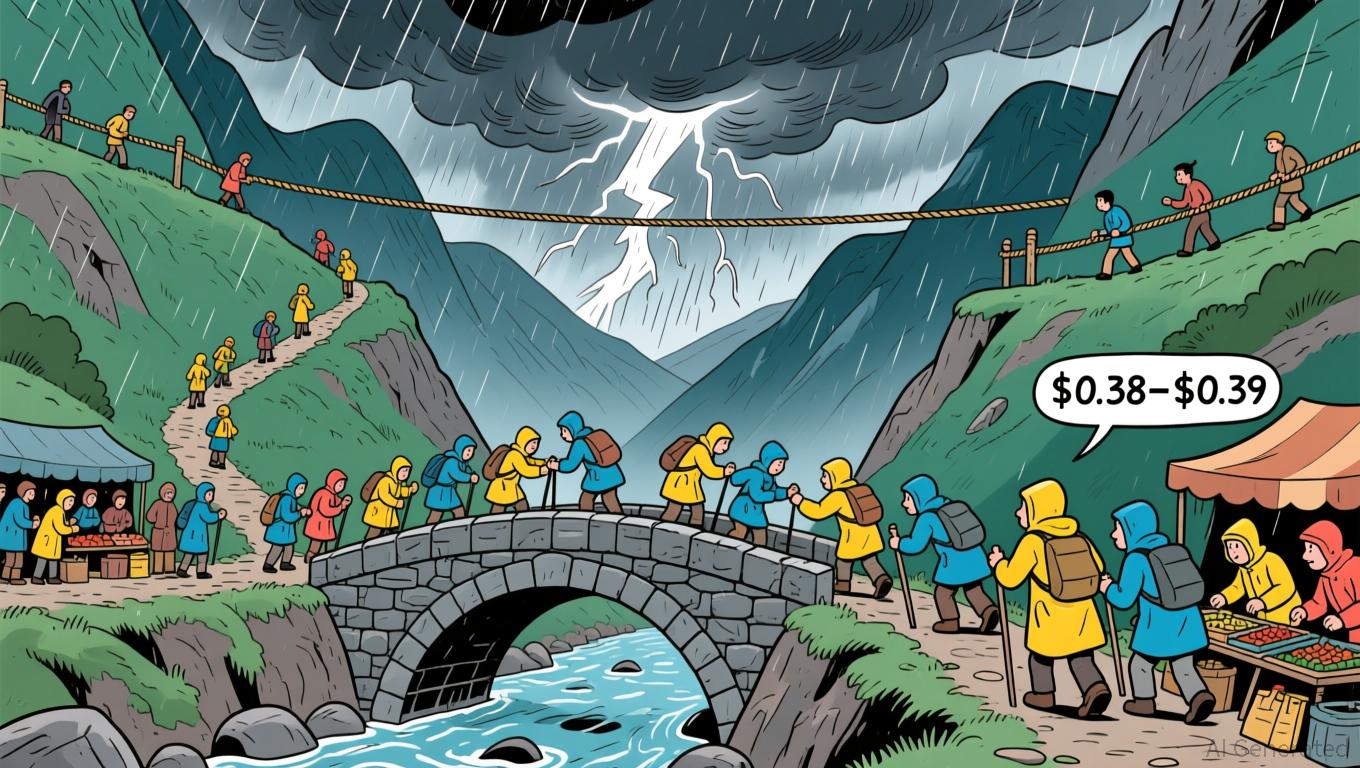 consolidating within a descending triangle pattern, with lower highs and support holding near $0.38–$0.39 .