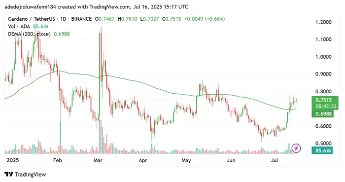 Cardano News today highlights renewed momentum in mid-July 2025, with ADAADA-- posting a 39% gain this month. On-chain data shows large holders accumulating around $0.70–$0.77, prompting speculation about a possible move toward the $0.90–$1.00 range or a longer-term revisit of prior cycle highs near $3.