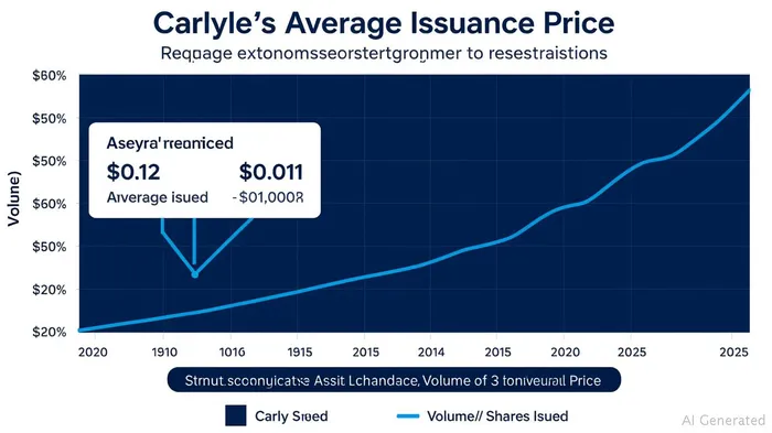 Analyzing issuances from 2022–2025 reveals a pattern of declining issuance prices and rising share volumes, indicating Carlyle is: