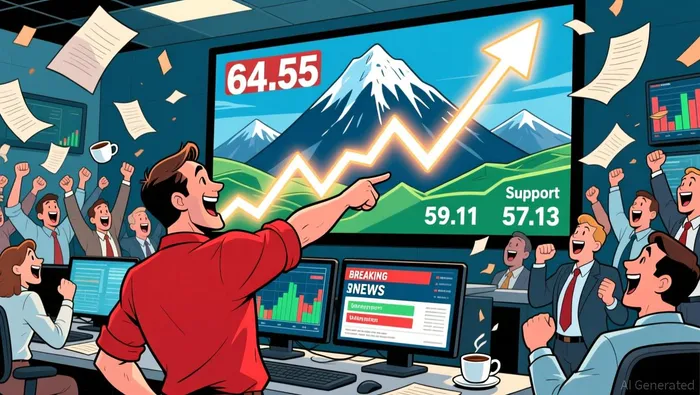 The recent price action forms a bullish engulfing pattern, with the two-day rally surpassing prior resistance levels. Key support levels are evident at $59.11 (Dec 31 low) and $57.13 (Dec 15 low), while resistance is reinforced at $64.55 (Jan 5 high). A break above $64.55 may indicate a continuation of the uptrend, whereas a retest of $59.11 could validate its role as a dynamic support. The absence of bearish reversal patterns like dark cloud covers or evening stars suggests the bullish momentum remains intact.