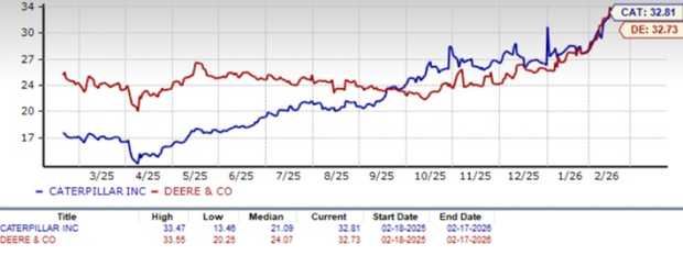 Caterpillar’s superior return on equity, improving fundamentals and exposure to major secular trends, such as data center expansion, energy transition and infrastructure investment, make it the more favorable choice for investors seeking industrial exposure. Currently, Caterpillar holds a Zacks Rank #3 (Hold), while Deere is rated Zacks Rank #4 (Sell).