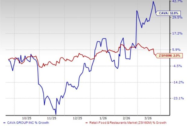 Shares of CAVA have gained 32.8% in the past six months compared with the industry’s rise of 2%.