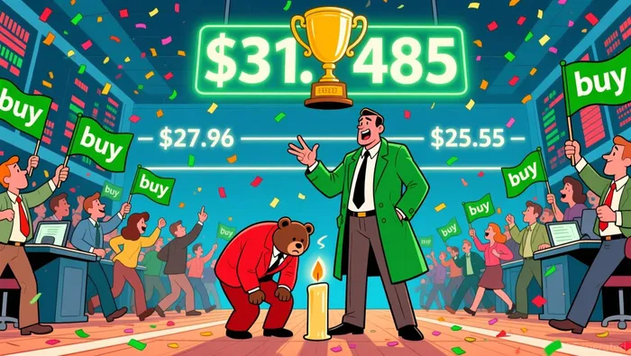 The recent two-day rally features a strong bullish engulfing pattern, with the second day’s close at $31.12 near the high of $31.485, indicating aggressive buying. However, the prior week’s volatility, including a 6.78% decline on November 24, suggests a key support zone at $25.55–$25.82. A breakdown below $27.96 would invalidate the bullish bias, while a sustained move above $28.51 could target $30.00, a prior resistance level.