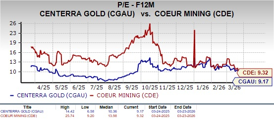 Centerra and Coeur both offer solid upside, but CGAU stands out on a more balanced, risk-adjusted basis. Coeur is benefiting from strong production growth and expansion-driven momentum, but this comes with higher execution risk tied to ongoing ramp-ups and acquisitions. Centerra delivers more stable operations, supported by consistent output from Mount Milligan and Oksut, alongside a disciplined approach to growth and capital allocation. CGAU’s strong liquidity and lower-risk profile provide added resilience. With both stocks trading at similar forward valuations, CGAU’s steadier performance and lower execution risk make it the more attractive investment option.