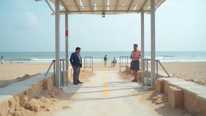 Chennai Deputy Mayor M. Magesh Kumaar inspected the proposed renovation of the pathway for persons with disabilities at Marina Beach and reviewed ongoing works to acquire Blue Flag certification by the Greater Chennai Corporation. The renovation includes various facilities such as surveillance towers, shaded seating areas, rest zones, and ramps for persons with disabilities, under the TN-SHORE Scheme for an estimated cost of ₹6 crore.