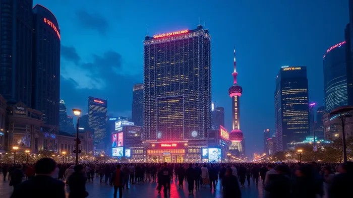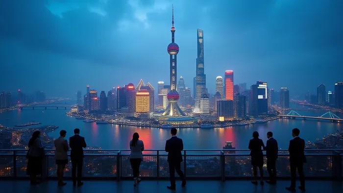 首先,标题需要吸引人且明确,例如《中国降息与贷款宽松:应对关税的策略性举措》。接下来,在文章中插入一个与上海金融中心相关的图片描述,例如:
