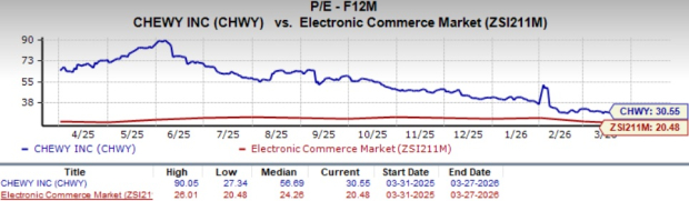 CHWY shares have lost 21% in the past three months compared with the industry’s 14.9% decline. The company carries a Zacks Rank #3 (Hold) at present.