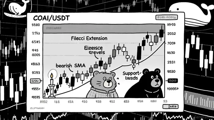 ChainOpera AI (COAI) has surged over 50% in a single day in early October 2025, reaching $4.38, driven by new listings on Bybit and AsterASTER--, as well as speculative fervor around AI sector collaborations like AMD and OpenAI, according to a Phemex price prediction. Technically, COAI's price action reflects a strong uptrend, with Fibonacci Extensions projecting targets at $4.78 and $6.67 (Phemex). However, short-term moving averages (8 SMA at $8.06, 13 SMA at $8.61, and 21 SMA at $10.20) show bearish divergence, signaling potential exhaustion in the rally, as noted by RSIHunter.