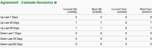 The Zacks Consensus Estimate for Coherent’s fiscal 2026 sales and EPS indicates year-over-year growth of 19.4% and 52.4%, respectively. Eight EPS estimates moved upward over the past 60 days, with no downward revision.