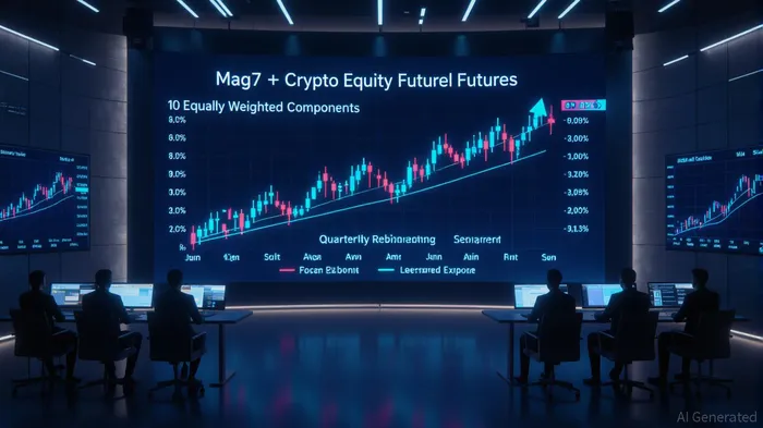 The Mag7 + Crypto Equity Index Futures are structured as a cash-settled, monthly futures contract with each component (Apple, MicrosoftMSFT--, Alphabet, AmazonAMZN--, NVIDIANVDA--, MetaMETA--, TeslaTSLA--, Coinbase stock, BlackRock’s IBIT, and ETHA) weighted at 10% [1]. This equal weighting ensures balanced exposure to two high-growth asset classes with historically low correlation (0.52) [3]. For institutions, this structure offers a capital-efficient tool to hedge risk and diversify portfolios without the operational complexity of managing separate crypto and equity positions.