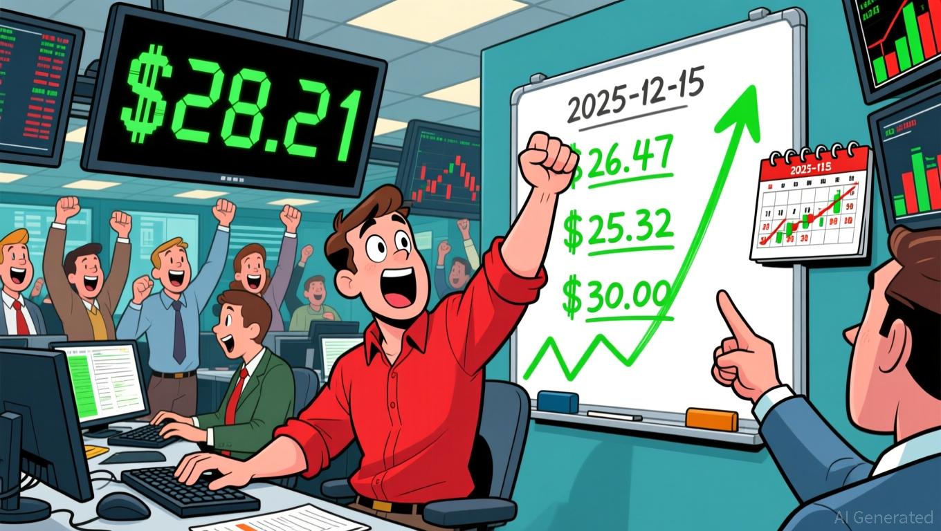 Recent price action reveals a bullish engulfing pattern on the 2025-12-15 session, where the candle’s body fully covers the preceding bearish candle, suggesting a potential reversal. Key support levels are identified at $26.47 (a prior trough) and $25.32 (a multi-month low), while resistance clusters near $28.30 (2025-12-15 high) and $30.00 (a psychological round number). The 2025-12-15 close at $28.21 has established a new short-term high, potentially forming a base for further upside.