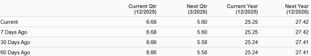 The Zacks Consensus Estimate for EME’s 2026 earnings estimates implies year-over-year growth of 8.6%. Its 2026 EPS estimates have trended upward over the past 30 days.