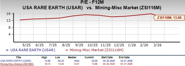 From a valuation standpoint, USAR is trading at a forward price-to-earnings ratio of negative 42.95X against the industry’s average of 13.86X. USA Rare EarthUSAR-- carries a Value Score of F.