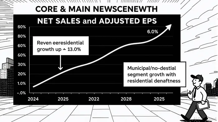 Core & Main's Q2 2025 results revealed a 6.6% year-over-year increase in net sales to $2.093 billion, driven by robust demand in municipal and non-residential markets . This growth was partially offset by weak residential demand, a persistent challenge in the sector. Adjusted diluted earnings per share (EPS) surged 13.0% to $0.87, outpacing revenue growth and reflecting improved gross profit margins. Gross profit expanded by 8.1% to $560 million, with margins rising to 26.8%—a 0.4 percentage point improvement from Q2 2024 . This margin expansion was attributed to strategic initiatives such as private label product growth and optimized supplier sourcing.