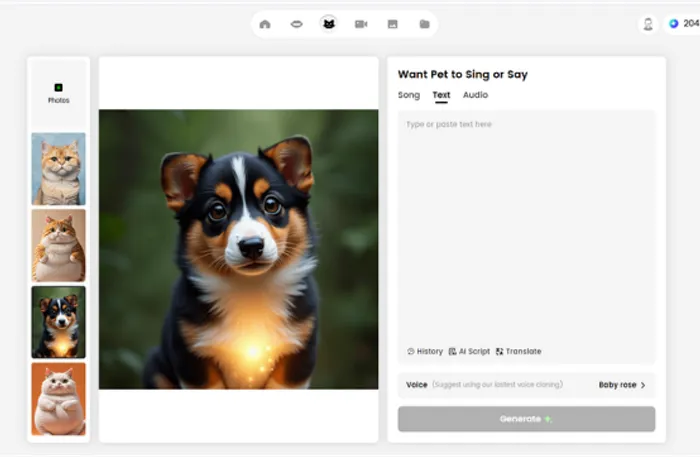 1. Upload your pet’s photo or video: Choose your pet’s best shot to create the perfect lip-sync performance.