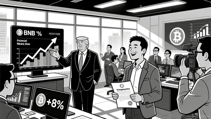 Zhao's pardon erased a criminal record stemming from a 2023 guilty plea for anti-money laundering (AML) violations, a case that saw him serve a four-month prison term and pay a $50 million fine, while Binance settled for $4.3 billion, according to a CoinPaprika report. The White House emphasized that no fraud or direct financial harm was alleged in Zhao's case, positioning the pardon as a symbolic step toward reducing regulatory friction for the crypto sector, as reported by the same CoinPaprika report. Markets responded swiftly: Binance's native token, BNBBNB--, surged approximately 8% in the wake of the announcement, reflecting investor optimism about a potential easing of enforcement pressures, according to a CoinoTag report.