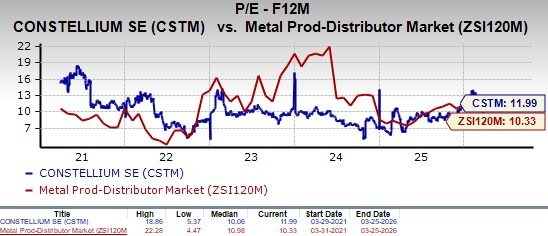From a valuation standpoint, CSTMCSTM-- is trading at a forward price-to-earnings ratio of 11.99X, above the industry’s average of 10.33X. Constellium carries a Value Score of A.