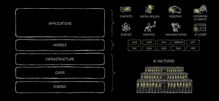 Huang categorizes this new industrial reality as a "5-Layer Cake":