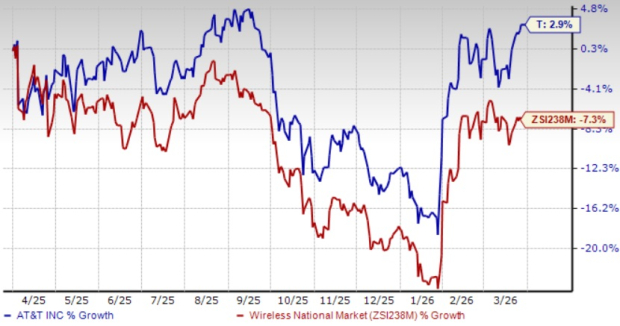 AT&T shares have gained 2.9% over the past year against the industry’s decline of 7.3%.