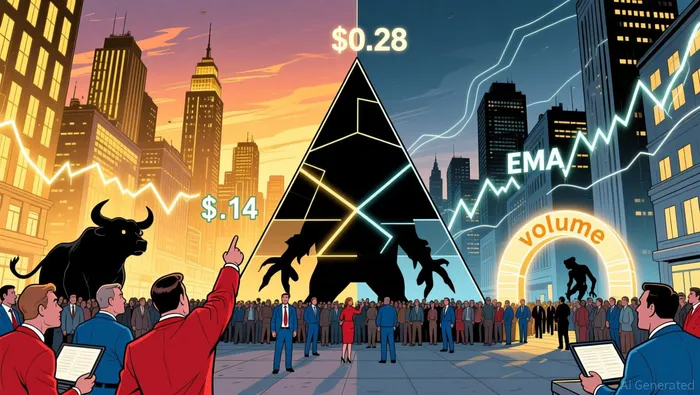The 14-day RSI hovers near 42, slightly below neutral, while the MACD shows flat momentum, indicating a consolidation phase as data indicates. A critical juncture lies in the $0.14–$0.16 support/resistance range. If DOGEDOGE-- holds above this zone and reclaims the 200 EMA ($0.21), it could signal a bullish reversal with targets at $0.29 as reports show. Conversely, a breakdown below $0.14 risks a 40% decline to $0.095 according to forecasts. Contrarian analysts argue that the current stabilization phase-marked by tight price compression-could precede a sharp move in either direction, depending on institutional catalysts.