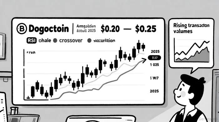 A golden cross-a bullish signal where the 50-day EMA crosses above the 200-day EMA-formed in early August 2025, historically associated with sustained price rallies, according to Sentora research. If Dogecoin breaks above the $0.26 resistance level, analysts project a test of $0.27–$0.35, contingent on volume and institutional momentum, per an InvestingHaven analysis. Conversely, a breakdown below $0.22 could trigger a retest of the $0.19–$0.13 support zone, as discussed in a Blockchain News report. The Stochastic RSI near oversold levels (14–18) and a MACD trending toward a bullish crossover further underscore the asset's potential for a rebound, which the OnTheNode analysis also highlights.