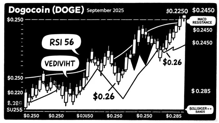 Dogecoin's price has been consolidating within a narrow band, with repeated failed attempts to break above $0.2450 and dips into the $0.2250 support zone[1]. As of September 20, the price hovered near $0.281, with key resistance at $0.285 and support near $0.26[5]. Technical indicators paint a mixed but cautiously optimistic picture:
