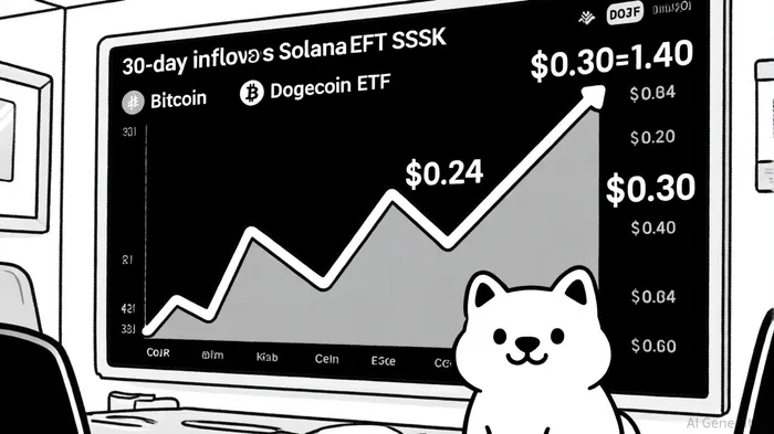 Analysts project DOJE could draw $2.5 billion in inflows during its first 30 days, assuming institutional adoption mirrors BitcoinBTC-- and EthereumETH-- ETF trends . For context, Bitcoin spot ETFs have averaged $4 billion in monthly inflows in 2025, while Ethereum ETFs have surged to $3.5 billion monthly . Even a fraction of this capital directed toward DOJE could push Dogecoin's price from its current $0.24 to $0.25–$0.30 in the near term .