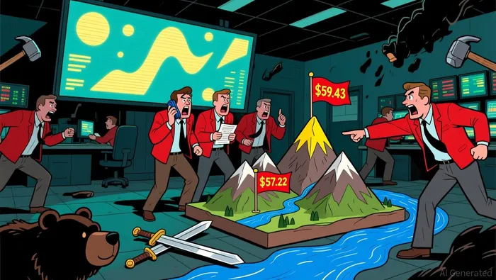 Key Fibonacci levels are derived from the recent high of $62.77 (11/28) and low of $57.22 (12/22). The 38.2% retracement level ($59.75) and 50% level ($60.00) now act as potential resistance. The current price near $57.22 aligns with the 61.8% retracement level ($58.00), suggesting a possible support zone. A break below $58.00 would target the 78.6% level ($56.50), but a sustained rebound above $60.00 could invalidate the bearish scenario.