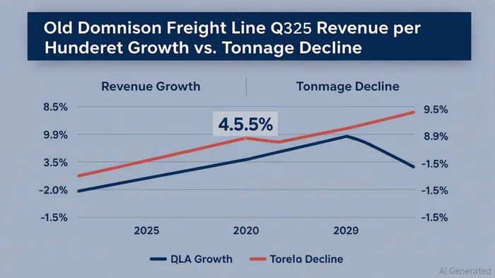 However, the LTL sector in 2025 faces significant headwinds. A midyear 2025 report by the KenCO Group notes declining tonnage and shipments across major carriers like ODFLODFL--, XPOXPO--, and FedEx[1], driven by oversupply and rising transportation costs. Despite this, ODFL has maintained pricing power. In Q3 2025, the company reported a 4.5% annual increase in LTL revenue per hundredweight (excluding fuel surcharges), even as LTL tons per day fell 9.2% year-over-year[1]. This demonstrates ODFL's ability to offset volume declines through strategic rate adjustments, a critical differentiator in a soft freight environment.