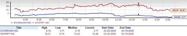 DoorDash DASH and Shopify SHOP are major players in the e-commerce space. While DASHDASH-- dominates food delivery with its restaurant partnerships and expanding grocery delivery services, ShopifySHOP-- is growing its presence in the e-commerce domain by offering user-friendly tools and an extensive app marketplace.