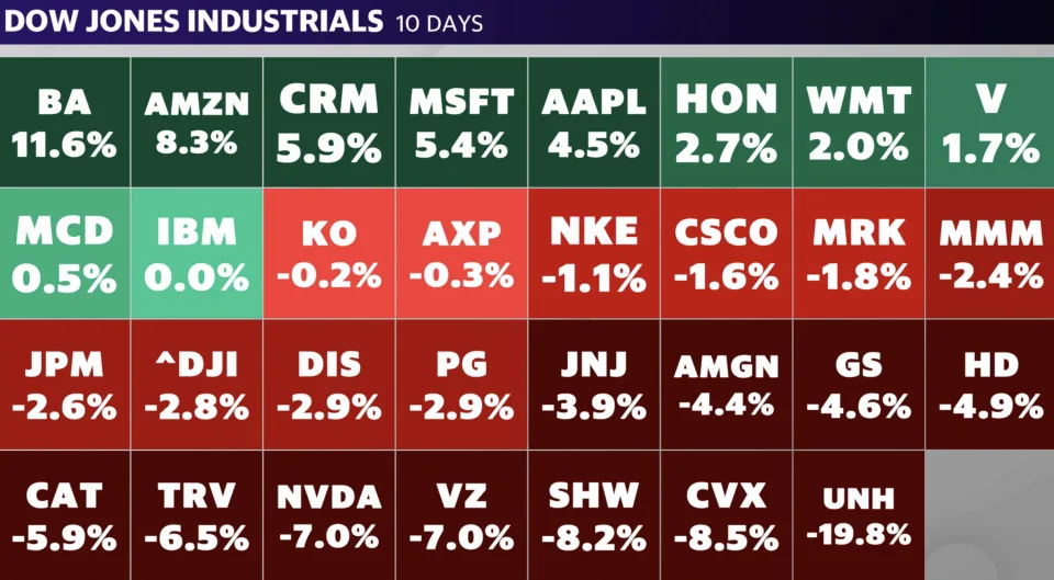 A significant portion of the Dow's decline can be attributed to UnitedHealth Group Inc. (UNH). Over the past 10 days, UNH shares have fallen by 20%, accounting for approximately 750 points of the Dow's 1,564-point loss during the streak. This singular influence reflects the unique price-weighted nature of the DJIA.
