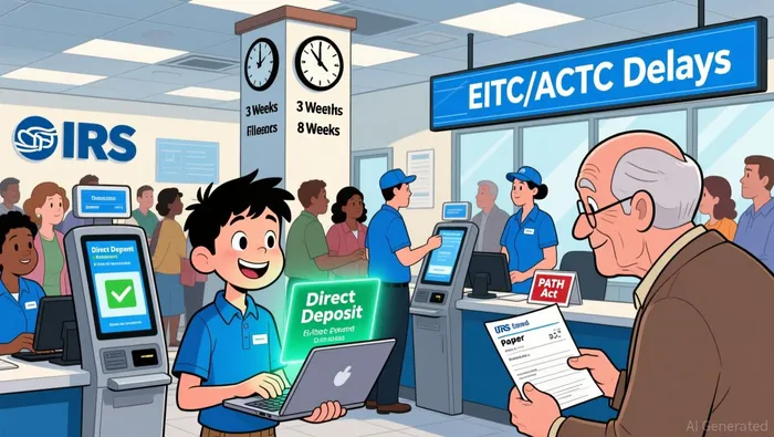 Taxpayers who don't use direct deposit may experience delays of up to six weeks, as the IRS is moving away from paper checks to reduce fraud and improve efficiency.