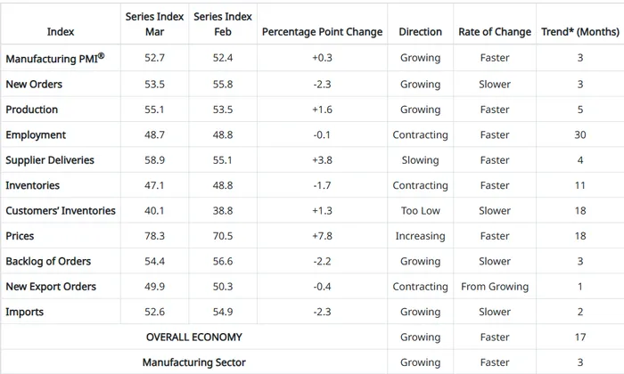 However, beneath the surface, the report was far from clean. The employment index remained in contraction at 48.7, signaling continued weakness in manufacturing hiring. New export orders also slipped back into contraction, reflecting softer global demand. Perhaps most concerning, the prices index surged to 78.3, its highest level since mid-2022, highlighting a renewed wave of input cost pressures. Much of this appears tied to geopolitical developments, particularly the Middle East conflict, which is disrupting supply chains and driving up energy-related costs.