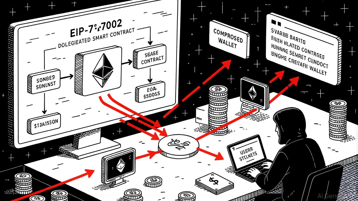 staking, faces potential losses due to phishing attacks exploiting EIP-7702 [2]. A single staff member approving a fraudulent transaction could trigger a $2.5 million loss, as seen in August 2025 [3]. These incidents highlight how EIP-7702’s flexibility introduces new attack vectors that bypass traditional smart contract audits, relying instead on human error. The Ethereum Foundation’s $1 trillion security initiative [1] underscores the urgency of addressing these vulnerabilities, but institutional exposure remains a critical concern.Wallet providers are adapting to counter these threats. MetaMask, for example, has implemented a whitelist mechanism to restrict delegate contracts to the official address (0x63c0c19a282a1B52b07Dd5a65b58948A07DAE32B) [1]. However, users remain vulnerable if they interact with fraudulent DApps or external links. Beyond MetaMask, Layer-2 solutions like Arbitrum are enhancing security through Optimistic Rollups and fraud-proof systems, reducing the attack surface for wallets [2]. Hardware wallets, such as SafePal’s S1, offer cold storage for multi-cryptocurrency support, mitigating digital theft risks [3].