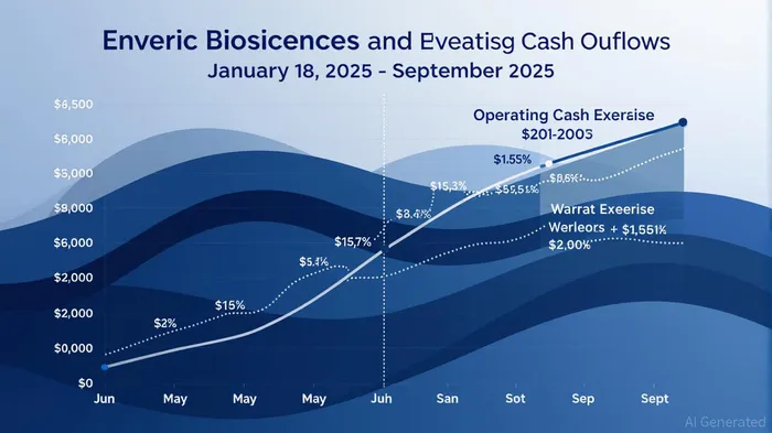 Enveric's cash position has been under pressure. As of June 30, 2025, the company reported $2.8 million in cash reserves, yet its operating cash outflow for the first half of 2025 reached $4.3 million, raising concerns about its ability to sustain operations as a going concern [3]. The recent $2.2 million inflow from the warrant exercise provides a temporary buffer, but the broader context reveals a company reliant on continuous capital infusions. For instance, EnvericENVB-- raised $4.9 million in net proceeds during the first half of 2025 alone, underscoring its dependence on financing tools to fund product development and operational expenses [4].