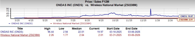 Valuation-wise, ONDS seems overvalued, as suggested by the Value Score of F. In terms of the forward 12-month Price/Sales ratio, ONDS is trading at 19.97, considerably higher than the industry’s multiple of 2.01.