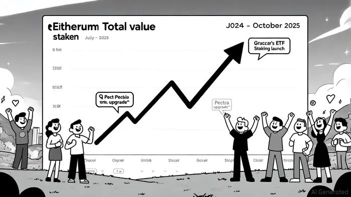 Ethereum's staking ecosystem has reached critical mass. By October 2025, 35.6 million ETH is staked, representing 29.6% of the total supply, per the Bitget report. The Pectra upgrade in mid-2025 further amplified this trend by raising the validator stake cap from 32 to 2,048 ETHETH--, enabling institutional-grade staking, according to a CryptoNews article. Notably, Grayscale's staking ETFs (ETHE and ETH) locked 32,000 ETH ($150M) on launch, signaling a shift in institutional capital toward yield-generating crypto assets, as shown in CoinLaw's staking stats.