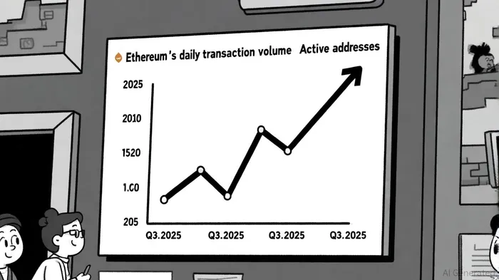 Ethereum's on-chain activity in Q3 2025 underscores its maturation as a scalable blockchain. Daily transaction volume consistently exceeded 1.74 million transactions, with active addresses surpassing 680,000 per day [1]. This surge reflects not only retail participation but also institutional demand, particularly in August 2025, when Ethereum's transaction volume hit $320 billion—a direct result of ETF inflows and decentralized finance (DeFi) expansion [1].