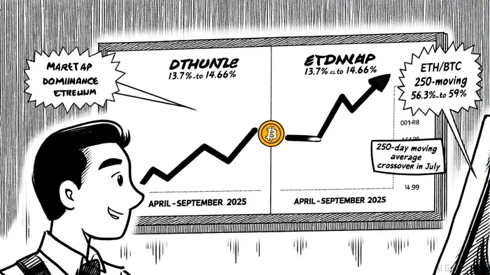 Ethereum's market cap dominance has grown steadily in 2025, rising from 13.7% in April to 14.66% by late August. This increase coincides with a decline in Bitcoin's dominance, which fell from 65% in May to 59% by August. The ETH/BTC ratio, a critical on-chain metric, crossed above its 250-day moving average in July 2025, a technical signal historically associated with altcoin rallies. This crossover indicates growing investor confidence in Ethereum's utility and scalability, particularly as the network's role in decentralized finance (DeFi) and tokenized assets expands.