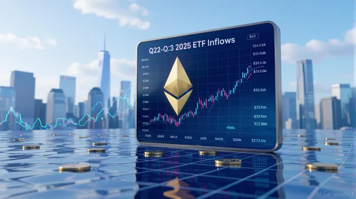 Ethereum ETFs have become a primary conduit for institutional capital, with net inflows surging from $28.5 billion in Q2 2025 to $27.6 billion in Q3 [1]. This growth reflects a strategic reallocation from BitcoinBTC-- to EthereumETH--, as investors seek higher-yielding assets. Farside Investors data reveals a staggering $3.7 billion in August 2025 alone, pushing Ethereum ETF inflows to $13.3 billion by August 26 [5]. Investment advisors, controlling 539,757 ETH in exposure, led this charge, capturing 219,668 ETH in net additions during Q2 [5]. These figures underscore Ethereum’s transition from speculative asset to institutional staple.