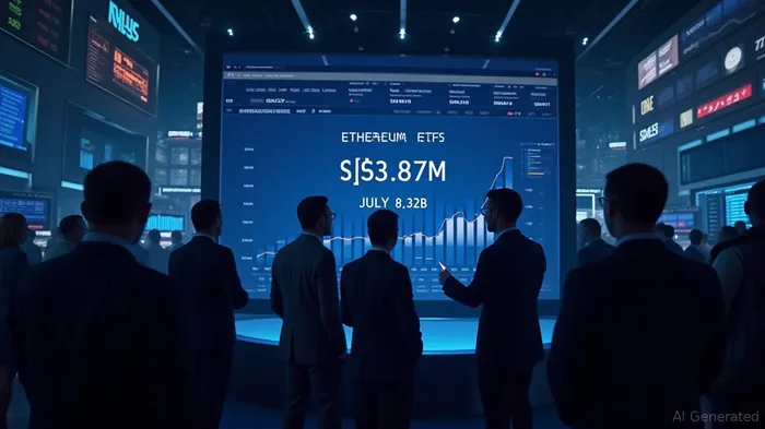 Ethereum spot ETFs recorded a net inflow of $533.87 million on July 22, 2025, marking the third-largest single-day inflow since their launch. This surge, driven by institutional demand, pushed cumulative inflows to $8.32 billion, with BlackRock’s ETHA fund accounting for 80% of the day’s inflows at $426.22 million. Grayscale and Fidelity’s funds added $72.64 million and $35.01 million, respectively, as EthereumETH-- ETFs dominated trading volume with $1.97 billion, outpacing BitcoinBTC-- ETFs, which faced net outflows of $67.93 million [1]. The inflows highlight Ethereum’s growing appeal as an institutional asset, despite signs of price momentum easing [2].