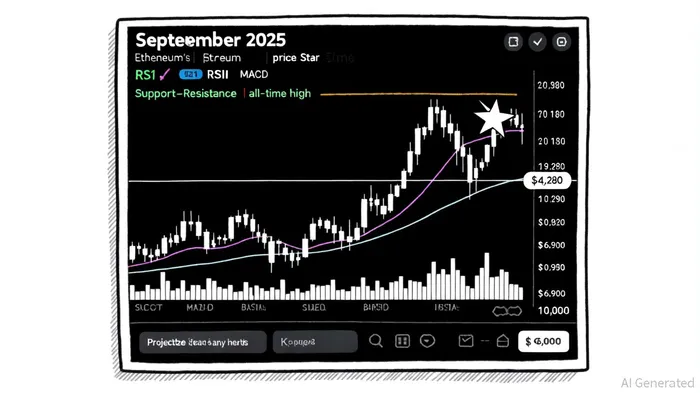 Ethereum's price action in September 2025 has been defined by a delicate balance between bullish and bearish forces. As of early September, ETH traded near $4,386, with immediate resistance at $4,956 and critical support at $3,500, according to a September 2 analysis. The 14-day RSI hovered around 52, indicating neutral-to-mildly bullish sentiment, while the MACD showed a modestly positive signal, suggesting upward momentum; that same analysis later noted the RSI approaching overbought territory (65–70), cautioning traders about potential selling pressure.