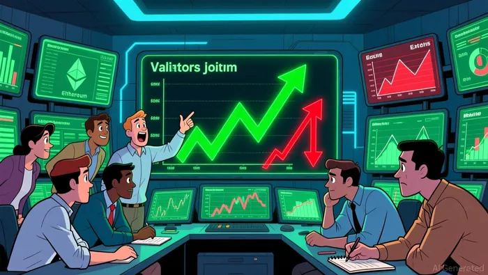 On-chain staking activity has emerged as a leading indicator of market sentiment. Following a 34% price drop from Ethereum's mid-September 2025 peak, staking withdrawals initially declined, with 2.6 million ETH exiting staking positions. However, this trend reversed as staking interest surged, driven by large deposits from entities like Bitmine. By December 2025, the validator entry queue exceeded 745,619 ETH, surpassing exit queues for the first time since June.