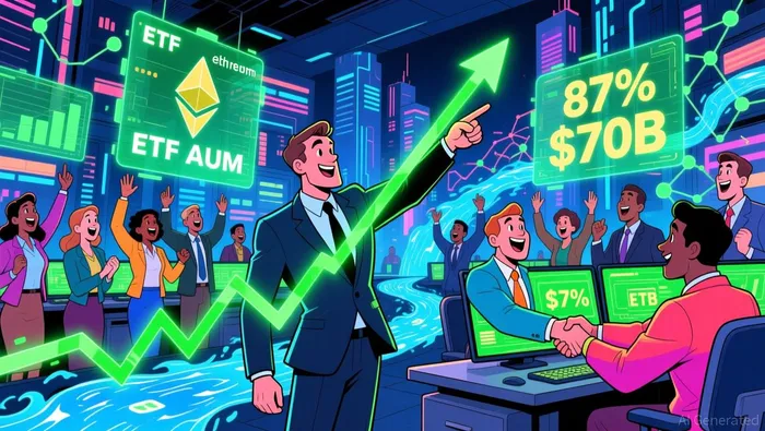 Institutional adoption of EthereumETH-- has accelerated, with spot ETFs becoming a cornerstone of risk appetite. By Q4 2025, Ethereum captured 15-30% of the ETF market share, reflecting growing institutional comfort with the asset despite its smaller market cap relative to BitcoinBTC--. Notably, institutional managers added to their Ethereum ETF holdings even as the broader crypto market corrected, mirroring Bitcoin's "buy the dip" behavior. This strategic buying was further amplified by the approval of ETH spot ETF staking mechanisms in late 2025, which enhanced yield generation and institutional participation. The result? Ethereum ETF assets under management (AUM) grew by 177% year-on-year, reaching $28.6 billion-a figure that outpaced Bitcoin's ETF growth and signaled a shift in capital allocation priorities.