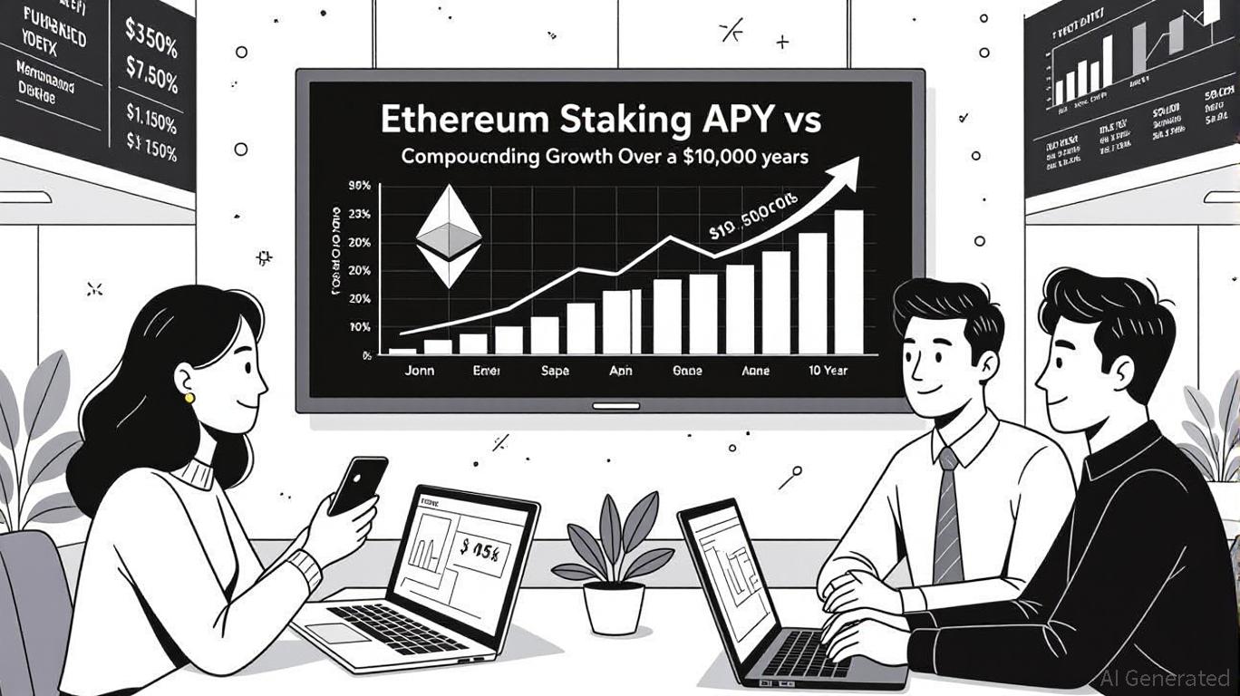 staking has emerged as a compelling alternative to traditional financial instruments. As of September 2025, Ethereum staking yields range from 1.89% for retail investors using platforms like to 5.69% for validators leveraging MEV-Boost mechanisms [2][3]. These figures starkly contrast with traditional savings accounts (0.38% APY) and even top-tier CDs (up to 4.45% APY) [1][4]. This divergence is not merely a short-term anomaly but a structural shift driven by Ethereum’s proof-of-stake (PoS) model, institutional adoption, and compounding dynamics.Ethereum’s staking rewards are inherently compounding, as validators reinvest their earnings to grow their stake. For example, a $10,000 investment in Ethereum staking at a 4.5% APY would grow to approximately $15,600 over 10 years, assuming reinvestment of rewards. In contrast, the same amount in a 4.45% CD would yield $15,500 under the same conditions [1][4]. While the difference appears marginal, Ethereum’s deflationary mechanisms—such as EIP-1559’s burn rate—further enhance real returns by reducing supply inflation [2].