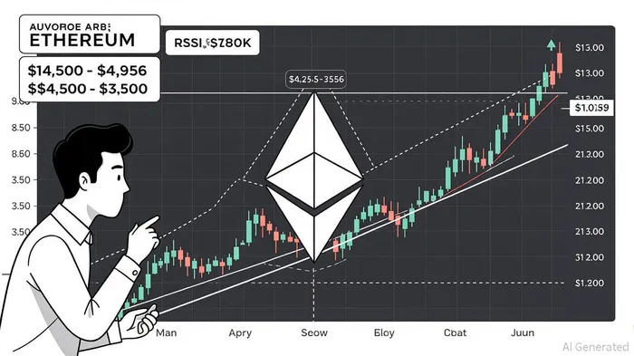 Ethereum is currently consolidating within a symmetrical or ascending triangle pattern, with key resistance levels at $4,500–$4,956 and critical support at $4,300–$4,060 [1]. A successful bullish breakout could propel the price to $4,750–$5,000 within two weeks, with longer-term targets of $5,200–$5,400 if momentum sustains [2]. Conversely, a breakdown below $4,300 risks a retest of $3,500, with extreme scenarios pointing to $2,932.46 [1].