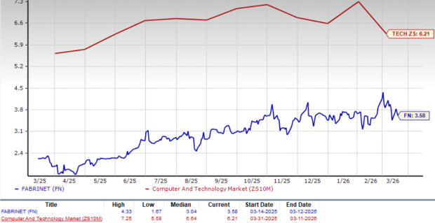 Fabrinet is currently trading at a lower price-to-sales (P/S) multiple, below the Zacks Computer and Technology sector. FN’s forward 12-month P/S ratio sits at 3.58X, significantly lower than the sector’s forward 12-month P/S ratio of 6.21X.